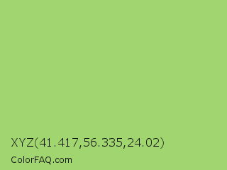 XYZ 41.417,56.335,24.02 Color is a light green color and the nearest color is Pistachio #93c572. Hex code #a1d570 and RGB value is rgb(161,213,112). In RGB color space, this color is composed of 63% red, 84% green, 44% blue, In CMYK color space, this color is composed of 24% cyan, 0% magenta, 47% yellow , 16% black , In HSL color space, this color has a hue angle of 91° , 55% saturation and 64% lightness.