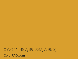 XYZ 41.487,39.737,7.966 Color is a normal orange color and the nearest color is Golden Grass #daa520. Hex code #d99f2d and RGB value is rgb(217,159,45). In RGB color space, this color is composed of 85% red, 62% green, 18% blue, In CMYK color space, this color is composed of 0% cyan, 27% magenta, 79% yellow , 15% black , In HSL color space, this color has a hue angle of 40° , 69% saturation and 51% lightness.