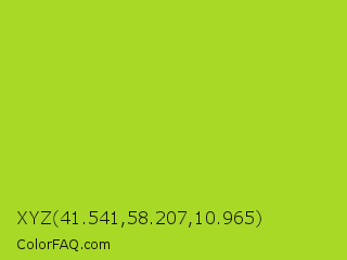 XYZ 41.541,58.207,10.965 Color is a normal lime color and the nearest color is Yellow Green #9acd32. Hex code #a9d927 and RGB value is rgb(169,217,39). In RGB color space, this color is composed of 66% red, 85% green, 15% blue, In CMYK color space, this color is composed of 22% cyan, 0% magenta, 82% yellow , 15% black , In HSL color space, this color has a hue angle of 76° , 70% saturation and 50% lightness.