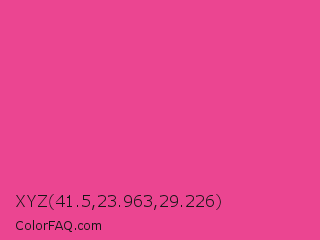 XYZ 41.5,23.963,29.226 Color is a normal rose color and the nearest color is Violet Red #f7468a. Hex code #eb4591 and RGB value is rgb(235,69,145). In RGB color space, this color is composed of 92% red, 27% green, 57% blue, In CMYK color space, this color is composed of 0% cyan, 71% magenta, 38% yellow , 8% black , In HSL color space, this color has a hue angle of 333° , 81% saturation and 60% lightness.