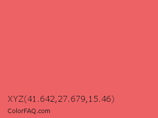 XYZ 41.642,27.679,15.46 Color is a light red color and the nearest color is Sunglo #e16865. Hex code #ed6265 and RGB value is rgb(237,98,101). In RGB color space, this color is composed of 93% red, 38% green, 40% blue, In CMYK color space, this color is composed of 0% cyan, 59% magenta, 57% yellow , 7% black , In HSL color space, this color has a hue angle of 359° , 79% saturation and 66% lightness.
