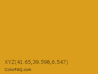 XYZ 41.65,39.598,6.547 Color is a normal orange color and the nearest color is Golden Grass #daa520. Hex code #db9e1c and RGB value is rgb(219,158,28). In RGB color space, this color is composed of 86% red, 62% green, 11% blue, In CMYK color space, this color is composed of 0% cyan, 28% magenta, 87% yellow , 14% black , In HSL color space, this color has a hue angle of 41° , 77% saturation and 48% lightness.