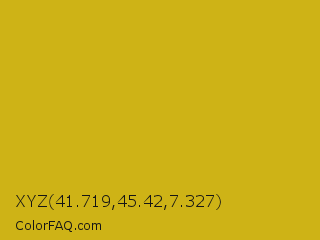 XYZ 41.719,45.42,7.327 Color is a normal yellow color and the nearest color is Galliano #dcb20c. Hex code #ceb316 and RGB value is rgb(206,179,22). In RGB color space, this color is composed of 81% red, 70% green, 9% blue, In CMYK color space, this color is composed of 0% cyan, 13% magenta, 89% yellow , 19% black , In HSL color space, this color has a hue angle of 51° , 81% saturation and 45% lightness.