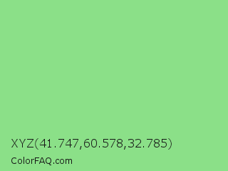 XYZ 41.747,60.578,32.785 Color is a light green color and the nearest color is Light Green #90ee90. Hex code #8be088 and RGB value is rgb(139,224,136). In RGB color space, this color is composed of 55% red, 88% green, 53% blue, In CMYK color space, this color is composed of 38% cyan, 0% magenta, 39% yellow , 12% black , In HSL color space, this color has a hue angle of 118° , 59% saturation and 71% lightness.