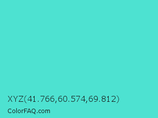XYZ 41.766,60.574,69.812 Color is a normal cyan color and the nearest color is Turquoise #40e0d0. Hex code #4de2d1 and RGB value is rgb(77,226,209). In RGB color space, this color is composed of 30% red, 89% green, 82% blue, In CMYK color space, this color is composed of 66% cyan, 0% magenta, 8% yellow , 11% black , In HSL color space, this color has a hue angle of 173° , 72% saturation and 59% lightness.
