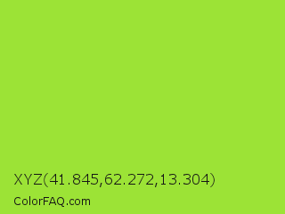 XYZ 41.845,62.272,13.304 Color is a normal green color and the nearest color is Kiwi #8ee53f. Hex code #9ce336 and RGB value is rgb(156,227,54). In RGB color space, this color is composed of 61% red, 89% green, 21% blue, In CMYK color space, this color is composed of 31% cyan, 0% magenta, 76% yellow , 11% black , In HSL color space, this color has a hue angle of 85° , 76% saturation and 55% lightness.