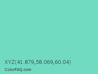 XYZ 41.879,58.069,60.04 Color is a light cyan color and the nearest color is Downy #6fd0c5. Hex code #71dbc2 and RGB value is rgb(113,219,194). In RGB color space, this color is composed of 44% red, 86% green, 76% blue, In CMYK color space, this color is composed of 48% cyan, 0% magenta, 11% yellow , 14% black , In HSL color space, this color has a hue angle of 166° , 60% saturation and 65% lightness.
