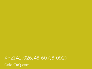 XYZ 41.926,48.607,8.092 Color is a normal yellow color and the nearest color is Key Lime Pie #bfc921. Hex code #c7bd19 and RGB value is rgb(199,189,25). In RGB color space, this color is composed of 78% red, 74% green, 10% blue, In CMYK color space, this color is composed of 0% cyan, 5% magenta, 87% yellow , 22% black , In HSL color space, this color has a hue angle of 57° , 78% saturation and 44% lightness.