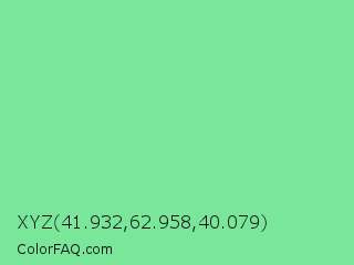 XYZ 41.932,62.958,40.079 Color is a light green color and the nearest color is Light Green #90ee90. Hex code #79e699 and RGB value is rgb(121,230,153). In RGB color space, this color is composed of 47% red, 90% green, 60% blue, In CMYK color space, this color is composed of 47% cyan, 0% magenta, 33% yellow , 10% black , In HSL color space, this color has a hue angle of 138° , 69% saturation and 69% lightness.
