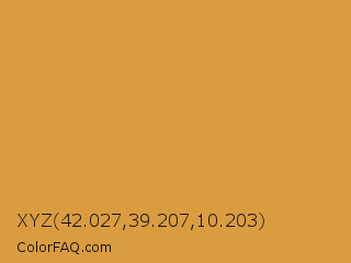 XYZ 42.027,39.207,10.203 Color is a normal orange color and the nearest color is Tigers Eye #e08d3c. Hex code #db9c40 and RGB value is rgb(219,156,64). In RGB color space, this color is composed of 86% red, 61% green, 25% blue, In CMYK color space, this color is composed of 0% cyan, 29% magenta, 71% yellow , 14% black , In HSL color space, this color has a hue angle of 36° , 68% saturation and 55% lightness.
