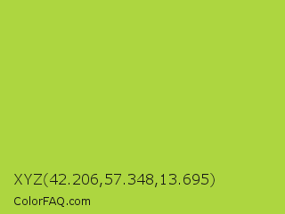 XYZ 42.206,57.348,13.695 Color is a normal lime color and the nearest color is Conifer #acdd4d. Hex code #add640 and RGB value is rgb(173,214,64). In RGB color space, this color is composed of 68% red, 84% green, 25% blue, In CMYK color space, this color is composed of 19% cyan, 0% magenta, 70% yellow , 16% black , In HSL color space, this color has a hue angle of 76° , 65% saturation and 55% lightness.