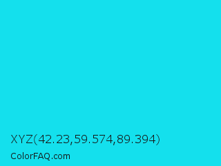 XYZ 42.23,59.574,89.394 Color is a normal cyan color and the nearest color is Bright Turquoise #08e8de. Hex code #14e0ed and RGB value is rgb(20,224,237). In RGB color space, this color is composed of 8% red, 88% green, 93% blue, In CMYK color space, this color is composed of 92% cyan, 5% magenta, 0% yellow , 7% black , In HSL color space, this color has a hue angle of 184° , 86% saturation and 50% lightness.