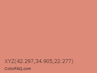XYZ 42.297,34.905,22.277 Color is a light red color and the nearest color is Burning Sand #d99376. Hex code #dd8a78 and RGB value is rgb(221,138,120). In RGB color space, this color is composed of 87% red, 54% green, 47% blue, In CMYK color space, this color is composed of 0% cyan, 38% magenta, 46% yellow , 13% black , In HSL color space, this color has a hue angle of 11° , 60% saturation and 67% lightness.