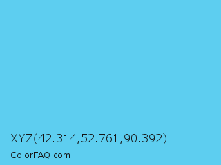 XYZ 42.314,52.761,90.392 Color is a light blue color and the nearest color is Turquoise Blue #6cdae7. Hex code #5dcef0 and RGB value is rgb(93,206,240). In RGB color space, this color is composed of 36% red, 81% green, 94% blue, In CMYK color space, this color is composed of 61% cyan, 14% magenta, 0% yellow , 6% black , In HSL color space, this color has a hue angle of 194° , 83% saturation and 65% lightness.