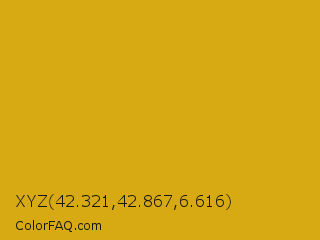 XYZ 42.321,42.867,6.616 Color is a normal yellow color and the nearest color is Galliano #dcb20c. Hex code #d7a912 and RGB value is rgb(215,169,18). In RGB color space, this color is composed of 84% red, 66% green, 7% blue, In CMYK color space, this color is composed of 0% cyan, 21% magenta, 92% yellow , 16% black , In HSL color space, this color has a hue angle of 46° , 85% saturation and 46% lightness.
