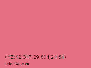 XYZ 42.347,29.804,24.64 Color is a light red color and the nearest color is Candy Pink #e4717a. Hex code #e66f82 and RGB value is rgb(230,111,130). In RGB color space, this color is composed of 90% red, 44% green, 51% blue, In CMYK color space, this color is composed of 0% cyan, 52% magenta, 43% yellow , 10% black , In HSL color space, this color has a hue angle of 350° , 70% saturation and 67% lightness.