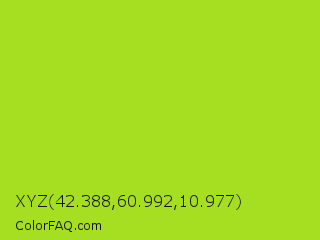 XYZ 42.388,60.992,10.977 Color is a normal lime color and the nearest color is Inch Worm #b0e313. Hex code #a6df21 and RGB value is rgb(166,223,33). In RGB color space, this color is composed of 65% red, 87% green, 13% blue, In CMYK color space, this color is composed of 26% cyan, 0% magenta, 85% yellow , 13% black , In HSL color space, this color has a hue angle of 78° , 75% saturation and 50% lightness.