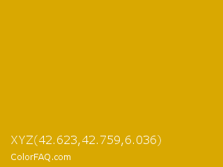 XYZ 42.623,42.759,6.036 Color is a normal yellow color and the nearest color is Galliano #dcb20c. Hex code #d9a801 and RGB value is rgb(217,168,1). In RGB color space, this color is composed of 85% red, 66% green, 0% blue, In CMYK color space, this color is composed of 0% cyan, 23% magenta, 100% yellow , 15% black , In HSL color space, this color has a hue angle of 46° , 99% saturation and 43% lightness.