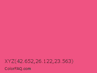 XYZ 42.652,26.122,23.563 Color is a light rose color and the nearest color is Dark Pink #e75480. Hex code #ef5381 and RGB value is rgb(239,83,129). In RGB color space, this color is composed of 94% red, 33% green, 51% blue, In CMYK color space, this color is composed of 0% cyan, 65% magenta, 46% yellow , 6% black , In HSL color space, this color has a hue angle of 342° , 83% saturation and 63% lightness.