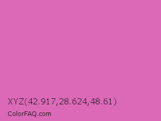 XYZ 42.917,28.624,48.61 Color is a light magenta color and the nearest color is Sky Magenta #cf71af. Hex code #db69b8 and RGB value is rgb(219,105,184). In RGB color space, this color is composed of 86% red, 41% green, 72% blue, In CMYK color space, this color is composed of 0% cyan, 52% magenta, 16% yellow , 14% black , In HSL color space, this color has a hue angle of 318° , 61% saturation and 64% lightness.