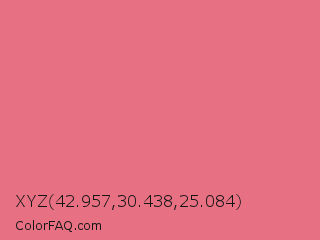 XYZ 42.957,30.438,25.084 Color is a light red color and the nearest color is Candy Pink #e4717a. Hex code #e77183 and RGB value is rgb(231,113,131). In RGB color space, this color is composed of 91% red, 44% green, 51% blue, In CMYK color space, this color is composed of 0% cyan, 51% magenta, 43% yellow , 9% black , In HSL color space, this color has a hue angle of 351° , 71% saturation and 67% lightness.