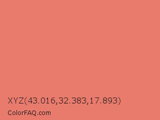 XYZ 43.016,32.383,17.893 Color is a light red color and the nearest color is Japonica #d87c63. Hex code #e87b6b and RGB value is rgb(232,123,107). In RGB color space, this color is composed of 91% red, 48% green, 42% blue, In CMYK color space, this color is composed of 0% cyan, 47% magenta, 54% yellow , 9% black , In HSL color space, this color has a hue angle of 8° , 73% saturation and 66% lightness.