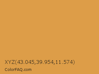 XYZ 43.045,39.954,11.574 Color is a normal orange color and the nearest color is Indian Yellow #e3a857. Hex code #dd9d48 and RGB value is rgb(221,157,72). In RGB color space, this color is composed of 87% red, 62% green, 28% blue, In CMYK color space, this color is composed of 0% cyan, 29% magenta, 67% yellow , 13% black , In HSL color space, this color has a hue angle of 34° , 69% saturation and 57% lightness.