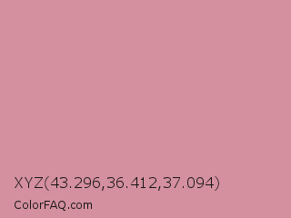 XYZ 43.296,36.412,37.094 Color is a light red color and the nearest color is Can Can #d591a4. Hex code #d4909e and RGB value is rgb(212,144,158). In RGB color space, this color is composed of 83% red, 56% green, 62% blue, In CMYK color space, this color is composed of 0% cyan, 32% magenta, 25% yellow , 17% black , In HSL color space, this color has a hue angle of 348° , 44% saturation and 70% lightness.