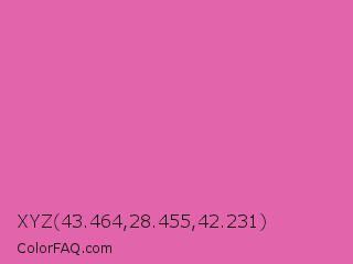 XYZ 43.464,28.455,42.231 Color is a light magenta color and the nearest color is Thulian Pink #de6fa1. Hex code #e265ac and RGB value is rgb(226,101,172). In RGB color space, this color is composed of 89% red, 40% green, 67% blue, In CMYK color space, this color is composed of 0% cyan, 55% magenta, 24% yellow , 11% black , In HSL color space, this color has a hue angle of 326° , 68% saturation and 64% lightness.