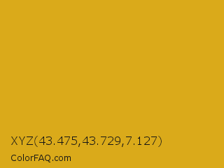 XYZ 43.475,43.729,7.127 Color is a normal orange color and the nearest color is Golden Grass #daa520. Hex code #daaa1a and RGB value is rgb(218,170,26). In RGB color space, this color is composed of 85% red, 67% green, 10% blue, In CMYK color space, this color is composed of 0% cyan, 22% magenta, 88% yellow , 15% black , In HSL color space, this color has a hue angle of 45° , 79% saturation and 48% lightness.