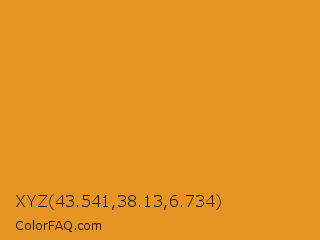 XYZ 43.541,38.13,6.734 Color is a normal orange color and the nearest color is Fire Bush #e89928. Hex code #e69424 and RGB value is rgb(230,148,36). In RGB color space, this color is composed of 90% red, 58% green, 14% blue, In CMYK color space, this color is composed of 0% cyan, 36% magenta, 84% yellow , 10% black , In HSL color space, this color has a hue angle of 35° , 80% saturation and 52% lightness.