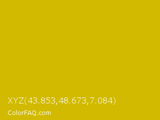 XYZ 43.853,48.673,7.084 Color is a normal yellow color and the nearest color is Galliano #dcb20c. Hex code #d1ba00 and RGB value is rgb(209,186,0). In RGB color space, this color is composed of 82% red, 73% green, 0% blue, In CMYK color space, this color is composed of 0% cyan, 11% magenta, 100% yellow , 18% black , In HSL color space, this color has a hue angle of 53° , 100% saturation and 41% lightness.