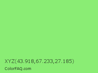 XYZ 43.918,67.233,27.185 Color is a light green color and the nearest color is Pastel Green #77dd77. Hex code #8aed74 and RGB value is rgb(138,237,116). In RGB color space, this color is composed of 54% red, 93% green, 45% blue, In CMYK color space, this color is composed of 42% cyan, 0% magenta, 51% yellow , 7% black , In HSL color space, this color has a hue angle of 109° , 77% saturation and 69% lightness.