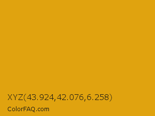 XYZ 43.924,42.076,6.258 Color is a normal orange color and the nearest color is Gamboge #e49b0f. Hex code #e0a30f and RGB value is rgb(224,163,15). In RGB color space, this color is composed of 88% red, 64% green, 6% blue, In CMYK color space, this color is composed of 0% cyan, 27% magenta, 93% yellow , 12% black , In HSL color space, this color has a hue angle of 42° , 87% saturation and 47% lightness.