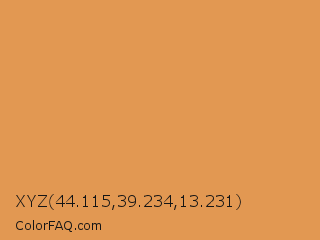 XYZ 44.115,39.234,13.231 Color is a normal orange color and the nearest color is Persian Orange #d99058. Hex code #e29852 and RGB value is rgb(226,152,82). In RGB color space, this color is composed of 89% red, 60% green, 32% blue, In CMYK color space, this color is composed of 0% cyan, 33% magenta, 64% yellow , 11% black , In HSL color space, this color has a hue angle of 29° , 71% saturation and 60% lightness.