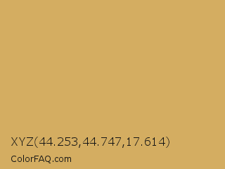 XYZ 44.253,44.747,17.614 Color is a light orange color and the nearest color is Earth Yellow #e1a95f. Hex code #d4ad61 and RGB value is rgb(212,173,97). In RGB color space, this color is composed of 83% red, 68% green, 38% blue, In CMYK color space, this color is composed of 0% cyan, 18% magenta, 54% yellow , 17% black , In HSL color space, this color has a hue angle of 40° , 57% saturation and 61% lightness.