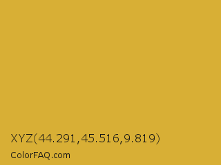 XYZ 44.291,45.516,9.819 Color is a normal orange color and the nearest color is Gold Metallic #d4af37. Hex code #d8af35 and RGB value is rgb(216,175,53). In RGB color space, this color is composed of 85% red, 69% green, 21% blue, In CMYK color space, this color is composed of 0% cyan, 19% magenta, 75% yellow , 15% black , In HSL color space, this color has a hue angle of 45° , 68% saturation and 53% lightness.