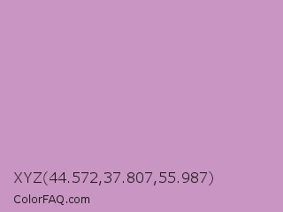 XYZ 44.572,37.807,55.987 Color is a light magenta color and the nearest color is Pastel Violet #cb99c9. Hex code #c995c2 and RGB value is rgb(201,149,194). In RGB color space, this color is composed of 79% red, 58% green, 76% blue, In CMYK color space, this color is composed of 0% cyan, 26% magenta, 3% yellow , 21% black , In HSL color space, this color has a hue angle of 308° , 33% saturation and 69% lightness.