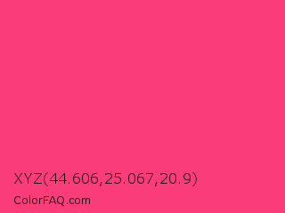 XYZ 44.606,25.067,20.9 Color is a light rose color and the nearest color is Sasquatch Socks #ff4681. Hex code #fa3d7a and RGB value is rgb(250,61,122). In RGB color space, this color is composed of 98% red, 24% green, 48% blue, In CMYK color space, this color is composed of 0% cyan, 76% magenta, 51% yellow , 2% black , In HSL color space, this color has a hue angle of 341° , 95% saturation and 61% lightness.
