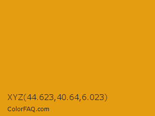 XYZ 44.623,40.64,6.023 Color is a normal orange color and the nearest color is Gamboge #e49b0f. Hex code #e69c11 and RGB value is rgb(230,156,17). In RGB color space, this color is composed of 90% red, 61% green, 7% blue, In CMYK color space, this color is composed of 0% cyan, 32% magenta, 93% yellow , 10% black , In HSL color space, this color has a hue angle of 39° , 86% saturation and 48% lightness.