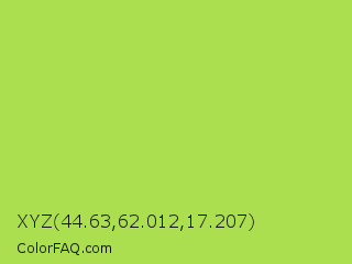 XYZ 44.63,62.012,17.207 Color is a normal green color and the nearest color is Conifer #acdd4d. Hex code #abdf50 and RGB value is rgb(171,223,80). In RGB color space, this color is composed of 67% red, 87% green, 31% blue, In CMYK color space, this color is composed of 23% cyan, 0% magenta, 64% yellow , 13% black , In HSL color space, this color has a hue angle of 82° , 69% saturation and 59% lightness.