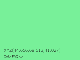 XYZ 44.656,68.613,41.027 Color is a light green color and the nearest color is Light Green #90ee90. Hex code #78f099 and RGB value is rgb(120,240,153). In RGB color space, this color is composed of 47% red, 94% green, 60% blue, In CMYK color space, this color is composed of 50% cyan, 0% magenta, 36% yellow , 6% black , In HSL color space, this color has a hue angle of 137° , 80% saturation and 71% lightness.