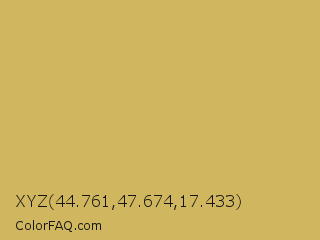 XYZ 44.761,47.674,17.433 Color is a normal yellow color and the nearest color is Sundance #c9b35b. Hex code #d0b65e and RGB value is rgb(208,182,94). In RGB color space, this color is composed of 82% red, 71% green, 37% blue, In CMYK color space, this color is composed of 0% cyan, 13% magenta, 55% yellow , 18% black , In HSL color space, this color has a hue angle of 46° , 55% saturation and 59% lightness.