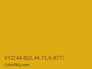 XYZ 44.822,44.71,6.977 Color is a normal orange color and the nearest color is Galliano #dcb20c. Hex code #deab15 and RGB value is rgb(222,171,21). In RGB color space, this color is composed of 87% red, 67% green, 8% blue, In CMYK color space, this color is composed of 0% cyan, 23% magenta, 91% yellow , 13% black , In HSL color space, this color has a hue angle of 45° , 83% saturation and 48% lightness.