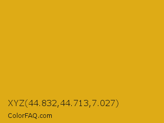 XYZ 44.832,44.713,7.027 Color is a normal orange color and the nearest color is Urobilin #e1ad21. Hex code #deab16 and RGB value is rgb(222,171,22). In RGB color space, this color is composed of 87% red, 67% green, 9% blue, In CMYK color space, this color is composed of 0% cyan, 23% magenta, 90% yellow , 13% black , In HSL color space, this color has a hue angle of 45° , 82% saturation and 48% lightness.