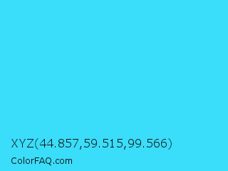 XYZ 44.857,59.515,99.566 Color is a normal cyan color and the nearest color is Turquoise #40e0d0. Hex code #3addfa and RGB value is rgb(58,221,250). In RGB color space, this color is composed of 23% red, 87% green, 98% blue, In CMYK color space, this color is composed of 77% cyan, 12% magenta, 0% yellow , 2% black , In HSL color space, this color has a hue angle of 189° , 95% saturation and 60% lightness.