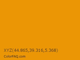 XYZ 44.865,39.316,5.368 Color is a normal orange color and the nearest color is Gamboge #e49b0f. Hex code #ea9605 and RGB value is rgb(234,150,5). In RGB color space, this color is composed of 92% red, 59% green, 2% blue, In CMYK color space, this color is composed of 0% cyan, 36% magenta, 98% yellow , 8% black , In HSL color space, this color has a hue angle of 38° , 96% saturation and 47% lightness.