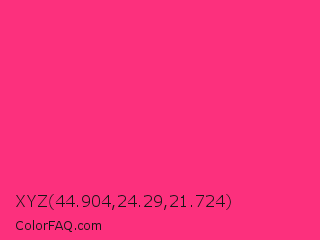 XYZ 44.904,24.29,21.724 Color is a normal rose color and the nearest color is Cerise Pink #ec3b83. Hex code #fc307d and RGB value is rgb(252,48,125). In RGB color space, this color is composed of 99% red, 19% green, 49% blue, In CMYK color space, this color is composed of 0% cyan, 81% magenta, 50% yellow , 1% black , In HSL color space, this color has a hue angle of 337° , 97% saturation and 59% lightness.