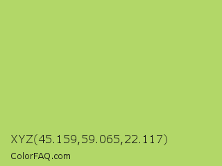 XYZ 45.159,59.065,22.117 Color is a light green color and the nearest color is Wild Willow #b9c46a. Hex code #b2d768 and RGB value is rgb(178,215,104). In RGB color space, this color is composed of 70% red, 84% green, 41% blue, In CMYK color space, this color is composed of 17% cyan, 0% magenta, 52% yellow , 16% black , In HSL color space, this color has a hue angle of 80° , 58% saturation and 63% lightness.