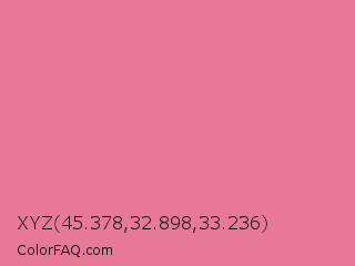 XYZ 45.378,32.898,33.236 Color is a light rose color and the nearest color is Bright Blush #e47698. Hex code #e77997 and RGB value is rgb(231,121,151). In RGB color space, this color is composed of 91% red, 47% green, 59% blue, In CMYK color space, this color is composed of 0% cyan, 48% magenta, 35% yellow , 9% black , In HSL color space, this color has a hue angle of 344° , 70% saturation and 69% lightness.